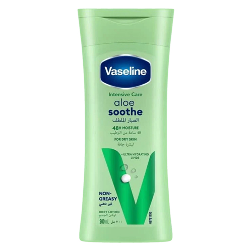 Vaseline Intensive Care Aloe Soothe Body Lotion has pure aloe vera extract and Vaseline Petroleum Jelly that deeply hydrates the skin. This moisturizing lotion can help repair cracked skin with regular use. Suitable for normal to dry skin.